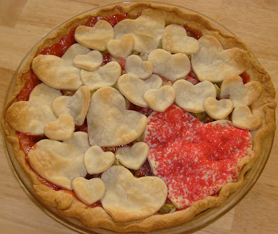I have been wanting to make strawberry rhubarb pie for a long time now. I think I'll try it this summer. That is the neatest pie I have ever seen! I love how the hearts are different sizes.